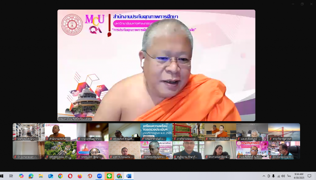 โดยมีพระมหาเผื่อน กิตฺติโสภโณ, ผศ.ดร. ผู้ช่วยอธิการบดีฝ่ายประกันคุณภาพการศึกษา เป็นประธานในการประชุม โดยเน้นย้ำถึงความสำคัญของการเตรียมความพร้อมสำหรับการตรวจประเมินคุณภาพการศึกษาภายในระดับหลักสูตรตามเกณฑ์มาตรฐานการอุดมศึกษา พ.ศ. 2565 ซึ่งเป็นกลไกสำคัญในการพัฒนาและสร้างความเชื่อมั่นในคุณภาพของหลักสูตร
